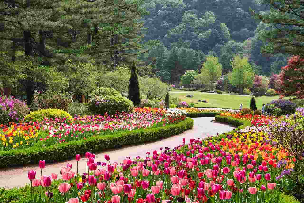 - 사계절 풍경: 봄의 튤립, 여름의 수국, 가을의 단풍, 겨울의 조명 축제가 기다립니다.